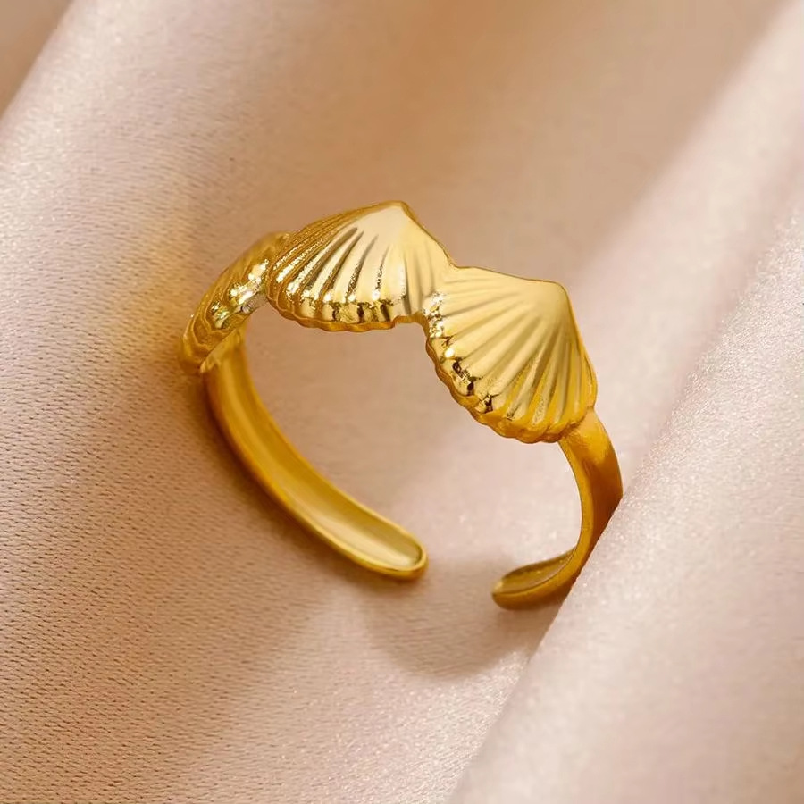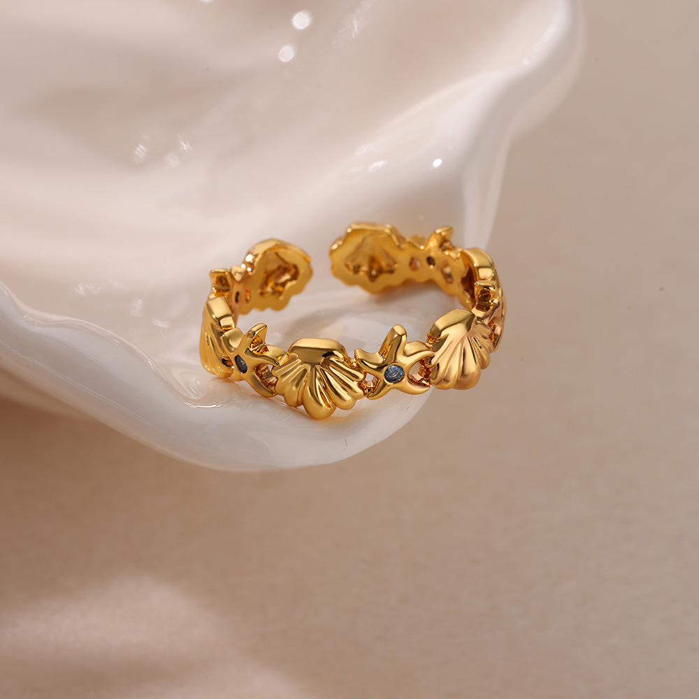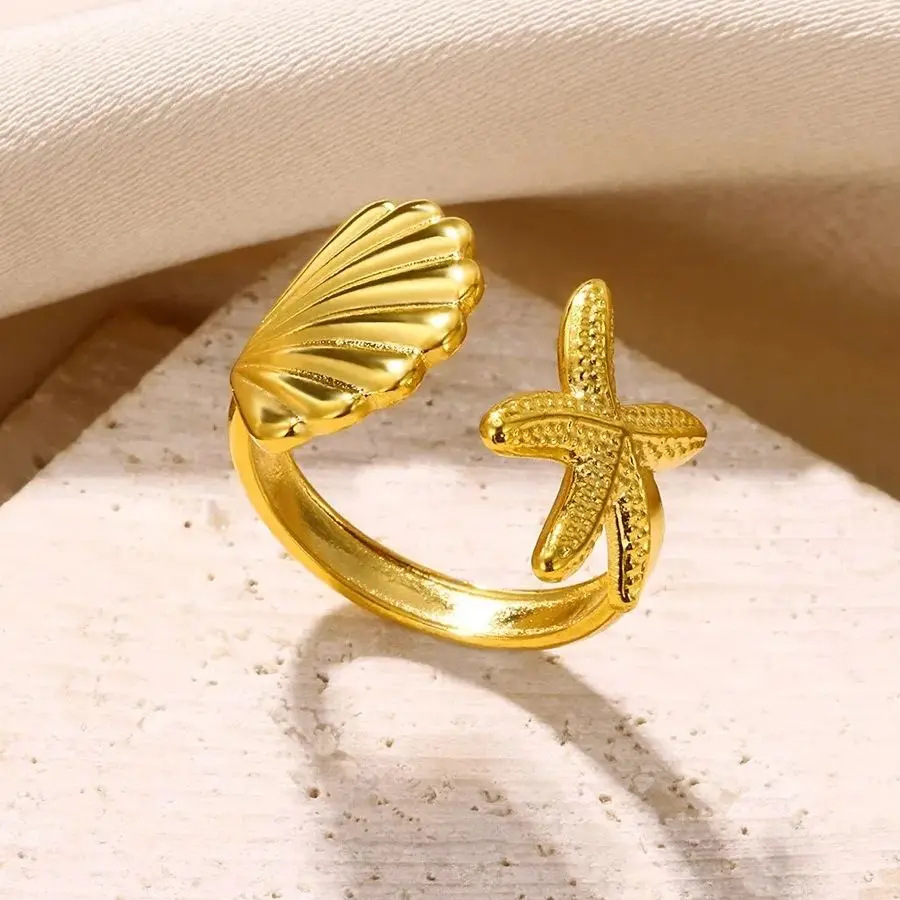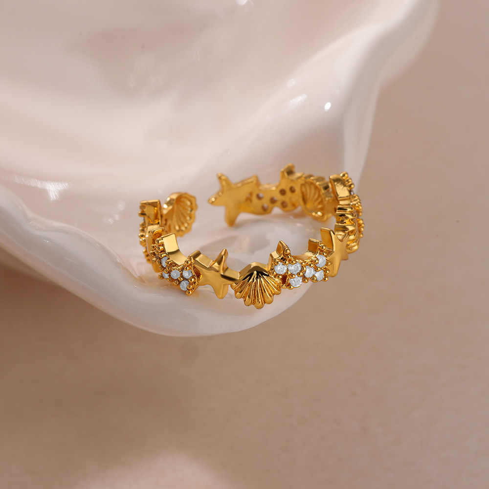 Ocean Wind Starfish Shell Stainless Steel Open Gold-plated Women's Vacation Jewelry