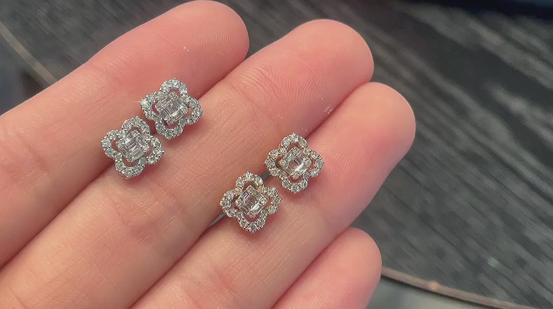 Lyft din elegans med våra utsökta 18K guld fyrklöver stegskurna örhängen. Dessa örhängen är gjorda till perfektion och har en huvudsten på D0,08ct och accentstenar på totalt d0,30ct, allt i en design som väger 1,78g. Det intrikata steg-cut mönstret ger en touch av sofistikering till varje look, vilket gör det till ett måste-ha smycke för alla tillfällen. Omfamna lyx och gör ett uttalande med vår premium smyckeskollektion.