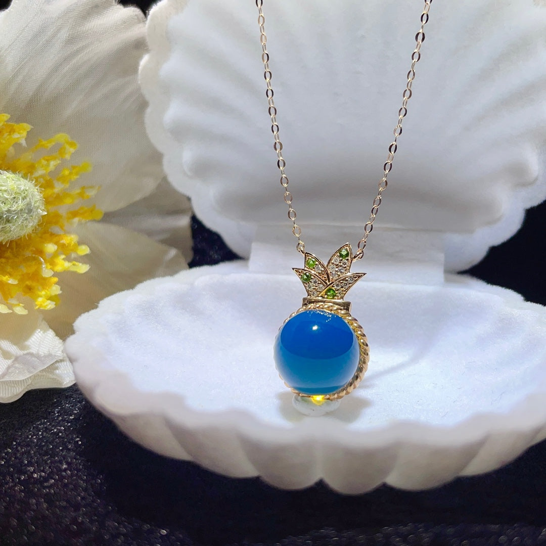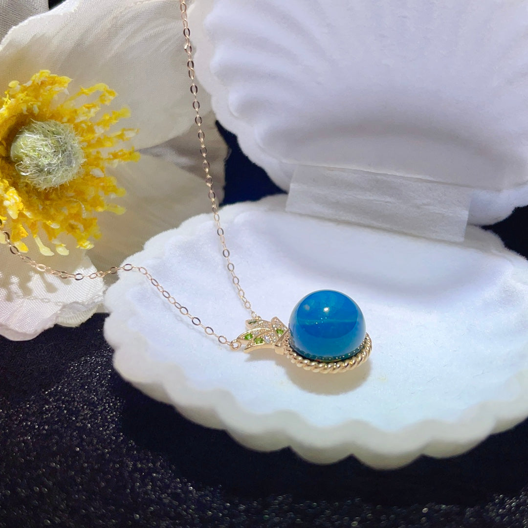 Utsökt 18K guld inbäddat dominikanskt blått bärnstenshänge - smycken för alla tillfällen